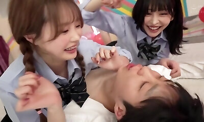 08:00Japanese schoolgirls analplay with older guy